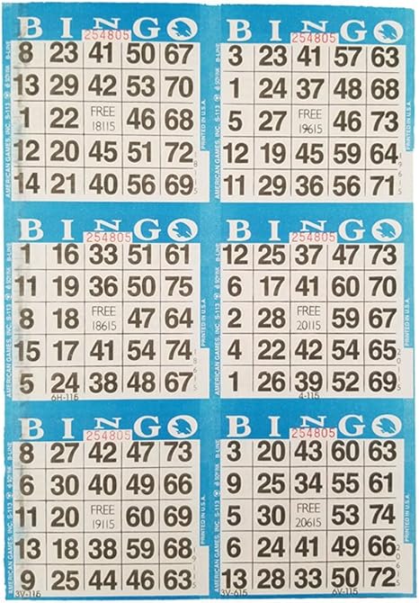 Bingo paper comes 6 cards, 20 in a book. Each page is a different color to play 20 games. Books are sold in packs of 25 or 50. Purchase the complimentary 3 on 20 up books for players who want to expand their game.